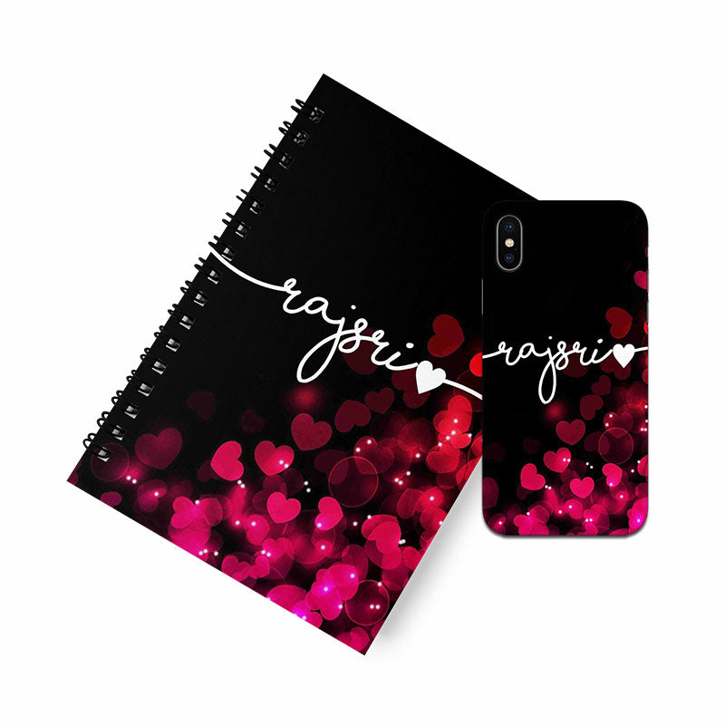 Red Hearts With Horizontal Name A5 Spiral Notebook Case Combo